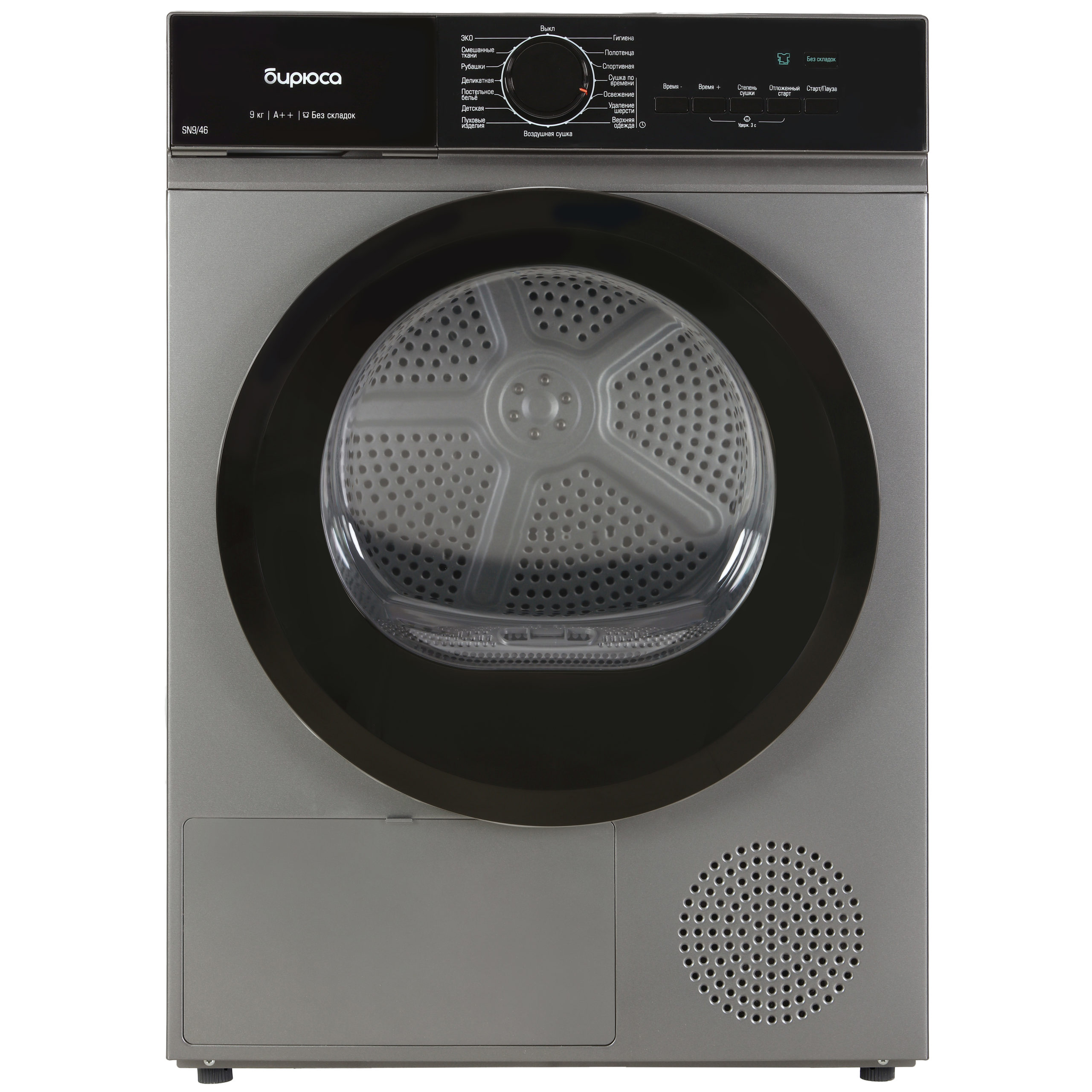 ✅ Реверсивное вращение барабана. Гарантирует равномерное распределение белья и ускоряет процесс сушки.